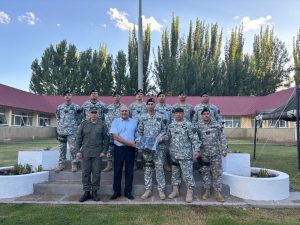 Todo comenzó con la presentación al Jefe del Escuadrón 27 Uspallata Comandante Principal Nelson Zarza, quien saludo a los efectivos , junto a la Delegada Municipal Mónica Velázquez La lluvia no fue motivo para que se entonaran las estrofas del Himno Nacional argentino, acompañados por los invitados a este acto.