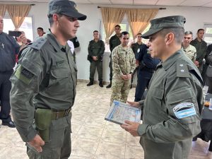 Todo comenzó con la presentación al Jefe del Escuadrón 27 Uspallata Comandante Principal Nelson Zarza, quien saludo a los efectivos , junto a la Delegada Municipal Mónica Velázquez La lluvia no fue motivo para que se entonaran las estrofas del Himno Nacional argentino, acompañados por los invitados a este acto.
