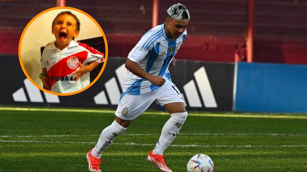 Woiski, con la camiseta de Argentina y los colores de River, cuando era un niño