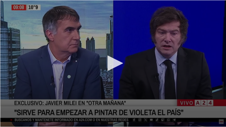 “A aquellos dirigentes que estén dispuestos a abrazar las ideas de la libertad, nosotros los vamos a abrazar a todos y vamos a hacer un espacio con todo lo que es centroderecha y las negociaciones están muy avanzadas”, analizó durante otro tramo del reportaje concedido al periodista Antonio Laje en A24.